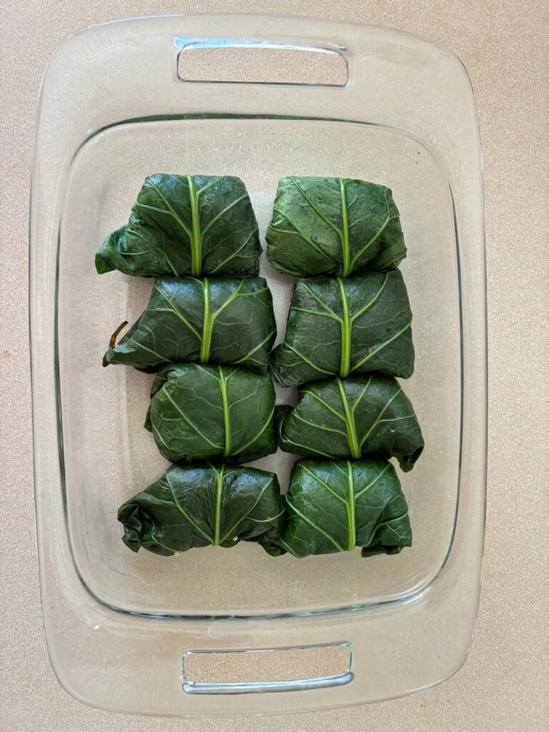 If you cannot find collards at your local farmers market, you can use cabbage leaves instead.
